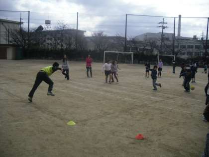 低学年の児童を守ってあげたり,ボールを譲ってあげたり,縦割りグループで仲良くゲームを楽しみました。