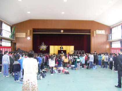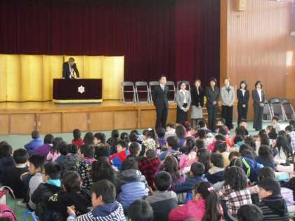 着任式に続いて「始業式」がありました。校長先生から,各学年にがんばってほしいことに続いて,全校でがんばることを話されました。「規則正しい生活をしましょう」「基礎となる学力を身につけよう」「人を大切にする心を持とう」という三つの大切なことを1年間忘れずにみんなですばらしい小栗栖小学校を創っていきましょうというお話をされました。