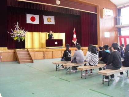 国歌斉唱,校歌斉唱のあと,校長先生の式辞があり,その後に担任の先生の紹介がありました。