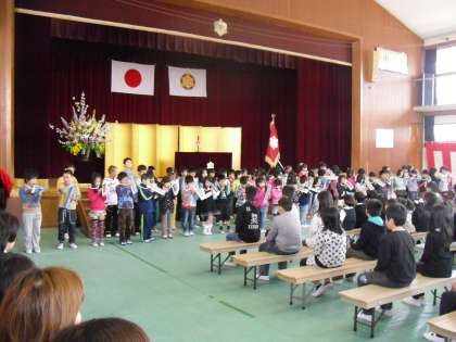 来賓の方の言葉の後,2,3年生による「お迎えの言葉」があり,演奏と歌で1年生を歓迎してくれました。
