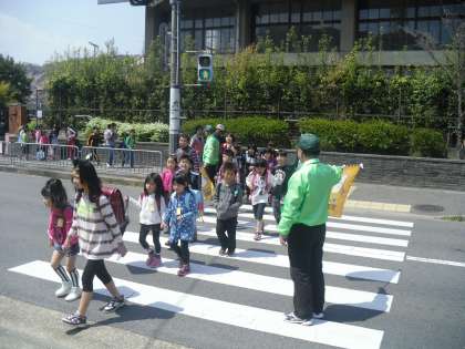 15日までは集団登校で安全に登校しましょう。