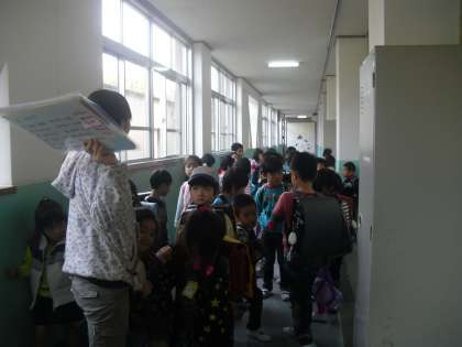 1年生は4つのコースに分かれて4月18日まで集団で下校をします。最初はかばんに荷物を入れて帰り支度をするのに時間がかかるものですが,とてもてきぱきとして支度をして早く廊下に並べていました。