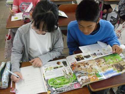 当時のくらしを話し合う場面では,食べ物について議論が大いに盛り上がりました。