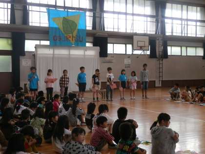 迎える会は児童会のあいさつからスタートし,2年〜6年までが「世界中の子どもたちが」の歌のプレゼントをしました。