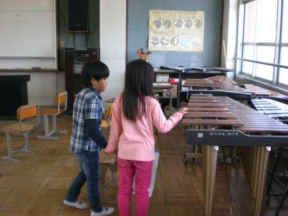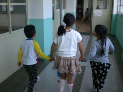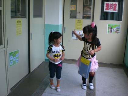 1年生と2年生で学校探検をしました。