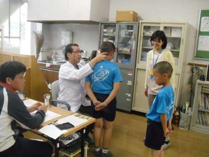 学校医(耳鼻咽喉科)の西村先生による耳鼻科検診が行われました。1年生から順番に全員が検診を受けました。6月には水泳学習も始まります。治療のすすめをもらった人は早く治療しましょう。