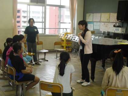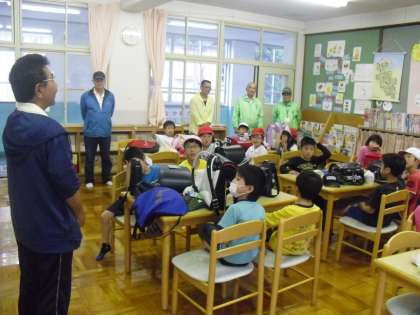 月曜日の部活動は,「音楽」「バスケット」「グランドゴルフ」です。今日は第1回目の活動日で,約束や活動の仕方を教えていただきました。1年間今のやる気を持ち続けてがんばりましょう。