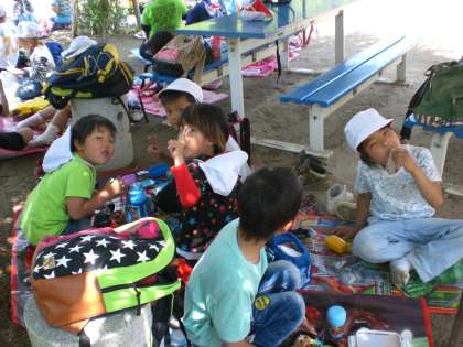 待ちに待ったお弁当タイムです。おなかぺこぺこのみんなはあっという間にぺろりと食べました。