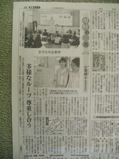 昨年度から京都新聞に「母校の一番」といって,京都府と滋賀県の各小学校の特色を連載されています。5月14日の新聞に本校が掲載されましたので,是非ご覧ください。