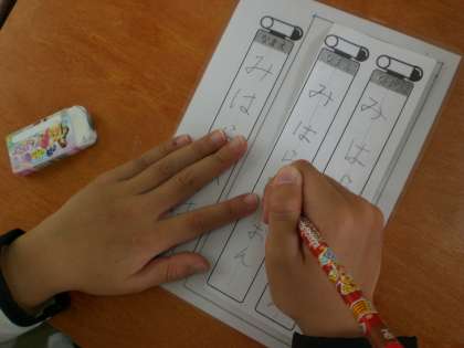 1年生では,チャレンジタイムに丁寧に名前を書く練習をしています。
