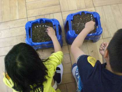 1年 あさがおの種をまいたよ!