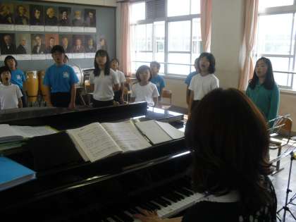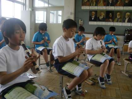 5年生は音楽で「心から心へ」という曲の合唱とリコーダーの学習をしています。とても美しい歌声と,リコーダーとのハーモニーが聞こえてきました。