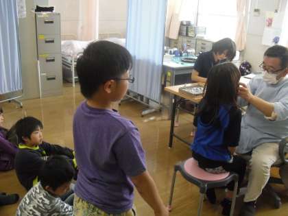 午後から高学年とあゆみ学級の歯科検診がありました。どの学年もとても静かに検診を受けていました。待っている態度もとても静かで感心しました。