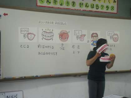 歯の模型を使ってとてもわかりやすく「噛みかた」を教えてもらいました。さっそく今日の給食から取り組みます。
