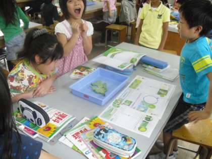 卵から緑色のかわいい幼虫に変化した様子に子ども達はびっくりしていました。