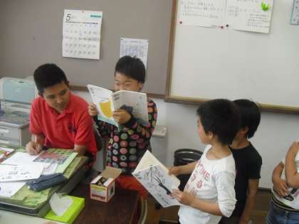 宿題をした後は,個別のプリントに取り組んでいます。スタッフの先生に音読を聞いてもらったりして,みんなよくがんばっています。