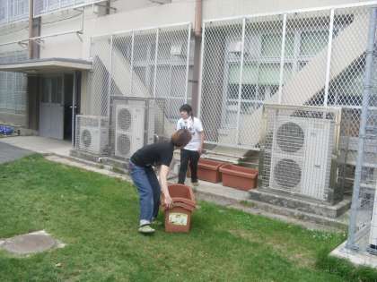 今年度もその準備として,ネットを取り付け,プランターを準備しています。来週にはゴーヤや西洋あさがおなどの苗を植え付ける予定です。