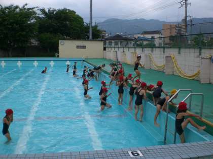 低水位のプールでしたが,水を怖がる子もおらず,2年生と一緒に楽しく学習をすることができました。