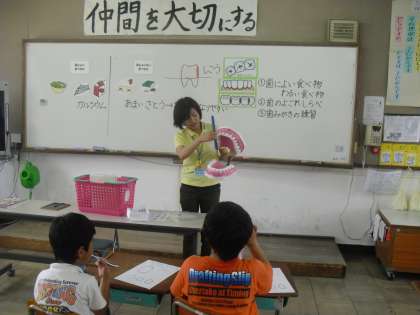 今日は4年2組で「歯磨き指導」がありました。