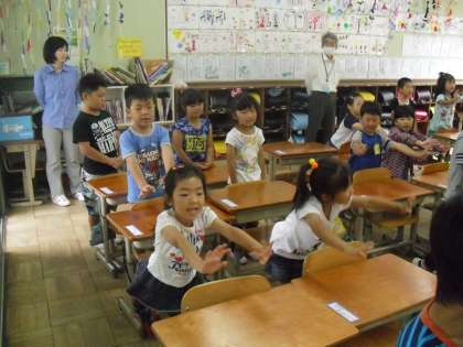 その後,1年生からお一人お一人に手作りのメッセージカードと歌のプレゼントしました。