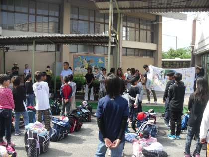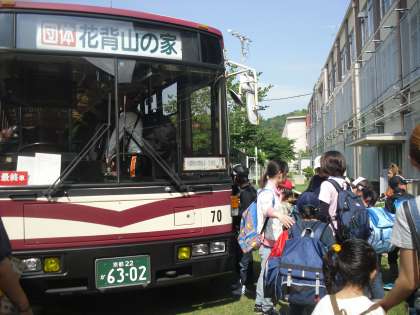 今日から4年生と5年生が「長期宿泊・体験学習」で花背山の家に行きます。