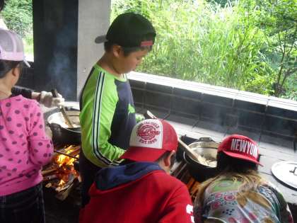 教えてもらった通りに薪を組んで上手に火をつけることができました。肉や野菜も上手に切って鍋に入れてしっかりと煮込みました。