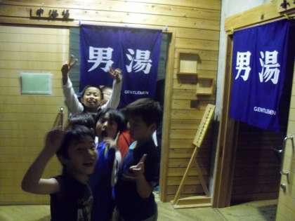 みんなで大きなお風呂に入って一日の疲れを落としました。お風呂の後は、ケンケンさんのゲームを楽しみました。