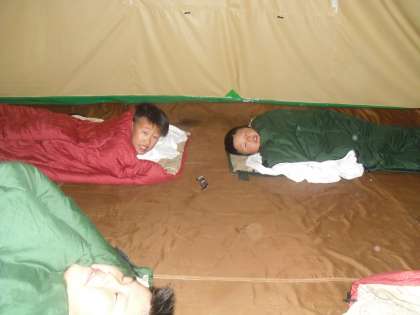 外は気温が下がって寒いくらいでしたが、テントの中はとても暖かくみんな気持ちよさそうにぐっすりと眠っていました。