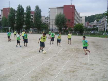 サッカー部は,毎週金曜日の放課後と,月に1〜2回程度土曜日も練習しています。子ども達はサッカーだ大好きで,休み時間も毎日サッカーをしています。ちょうど今,ブラジルでワールドカップをしているので,ますますサッカーが大流行です。