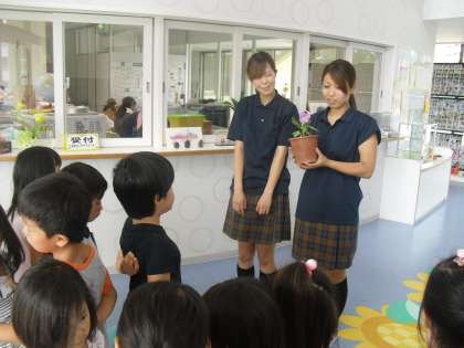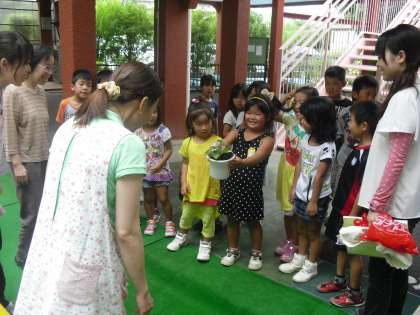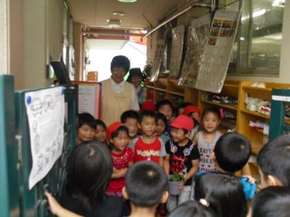 1年生が育てたあさがおを,自分が卒園した保育園に届けに行きました。お世話になった園長先生や担任の先生など,なつかしい先生方に会えて子ども達は大喜びでした。