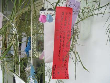 3年生1組と2組の間に「七夕かざり」をしました。子どもらしい素直な願い事が書かれていました。