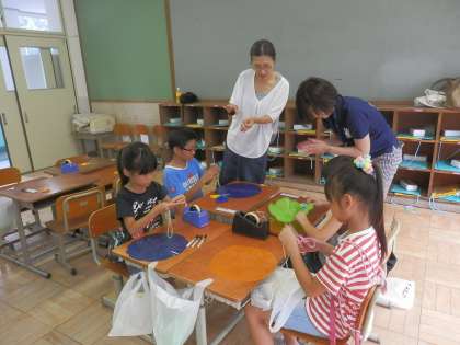 北校舎1階では,「豆つかみ」「パラシュート」「プラバンキーホルダー」のコーナーがありました。
