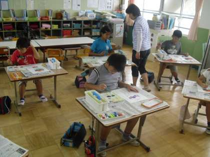 あゆみ学級では,絵の具で色作りの学習をしました。自分で作った色を気球に描いていきました。どの色とどの色を混ぜるとどんな色ができるのかを確かめながらいろいろな色を作りました。