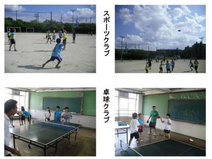「スポーツクラブ」は,ドッジビーを使ってアルティメットのゲームをしました。「卓球クラブ」ではサーブやレシーブの練習をしました。手芸・工作クラブ」では,マスコット作りを行っていました。「食べ物研究クラブ」では,中秋の名月にちなんでおだんご作りをしました。