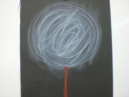 まず,画用紙にパスでぐるぐる線を描きます。その上を,ティッシュでこすると・・・
