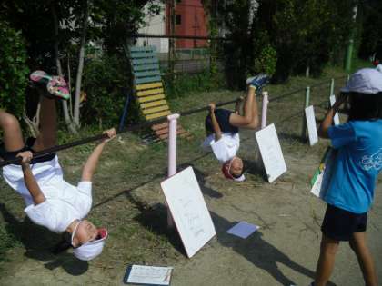 4年生は体育で「てつぼう運動」を行っています。学習カードに一人一人が今日の学習のめあてを書いて,学習に臨んでいます。