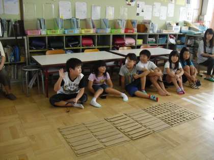 アイマスクをして点字ブロックの上を歩いて見えないという体験をしました。