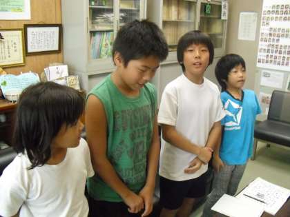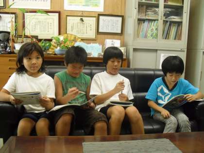 校長室にも4人の児童が来て,校長先生が朝会で話をする時に工夫していることや気をつけていることなどを質問しました。緊張しながらも真剣に聞いてメモをしていました。
