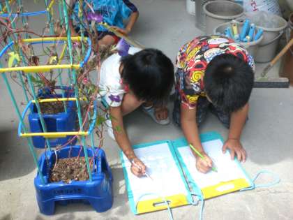 図工の学習で,あさがおの支柱のかげを写しました。