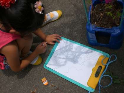 白い紙に映るかげを,ていねいになぞり,描き写していました。