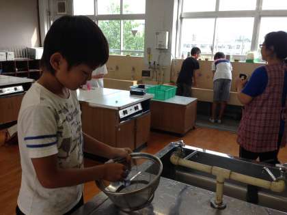 鰹のだしが入った物と入っていない物を飲み比べて感想を言い合いました。