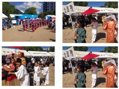 子ども太閤花見行列が会場の折戸公園に到着し,京都市長様はじめ多くの来賓の方々が出席された中で,「第24回醍醐ふれあいプラザ」の開会式が始まりました。