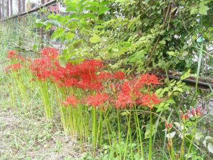 運動場の西側に「彼岸花(曼珠沙華)」が花を咲かせています。また,「柿」の実も少しずつ赤く色づいてきました。中庭の「ナツメ」の実も赤黒く熟してきました。