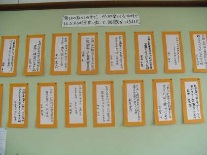 6年生は,毎日の暮らしの中で「心が楽しくなる時」や,「ほっとする時」を思い出して,「短歌」を作りました。