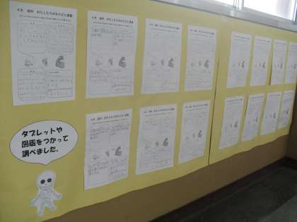 4年生が理科の学習「わたしたちのからだと運動」で,体の中の「骨」「筋肉」「関節」について,タブレットや図鑑で調べたことをまとめました。