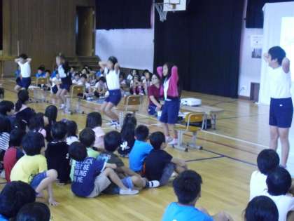 5班は,「うんちを出さなかったらどうなるの?」というテーマで発表しました。うんちを出さないと「便秘」になっていろいろな問題が起こることや,便秘にならない方法をわかりやすく発表してくれました。また,「うんちがでる体操」をみんなに教えてくれました。