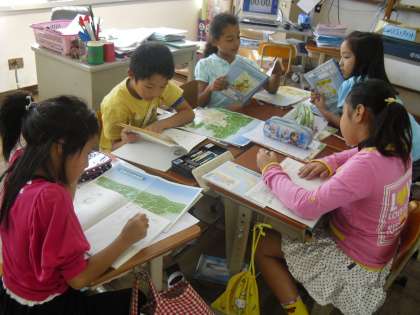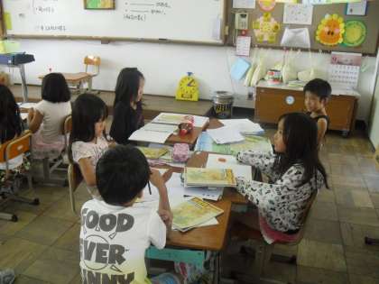 今日は,今まで学習した「京都市のようす」をまとめています。グループに分かれて,「山や川の様子」「鉄道や町の様子」「寺,神社の様子」「地形の様子」などについてまとめていました。