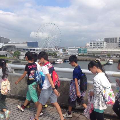 イルカ、シャチ、ベルーガなどが大きな水槽で泳いでいます。