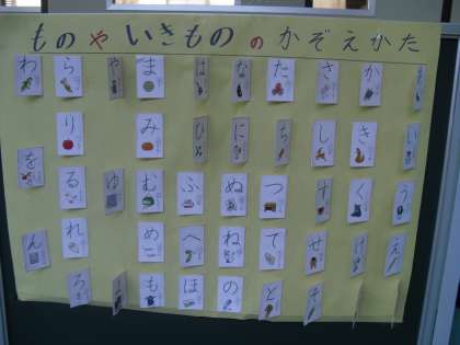 1年生の学習室の前の廊下に,「学習コーナー」があります。「ものや生き物の数え方」「ひまわりのタネを数えよう」など,子ども達が興味を持つような問題がたくさん作られています。