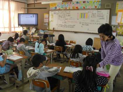 3年生は算数で「わり算」の学習をしています。今日は,あまりを考えて解く問題の学習をしました。「のびのびコース」も「ぐんぐんコース」も一生懸命考えていました。